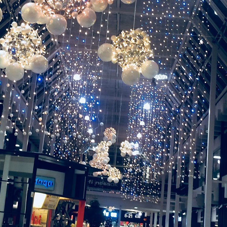 Elementer som hvide grantræer, kunstsne, snemaskiner, snefnug, is-krystaller, lysekroner, store kandelabre, blå light tables, snebolde, sølvfarvet folie og lamper med snefnug-lignende mønster er blot nogle af de ting, som vi bruger til dette tema.